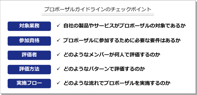 次章以降では、プロポーザルガイドラインの確認ポイントや具体的な中身を見ていきます。