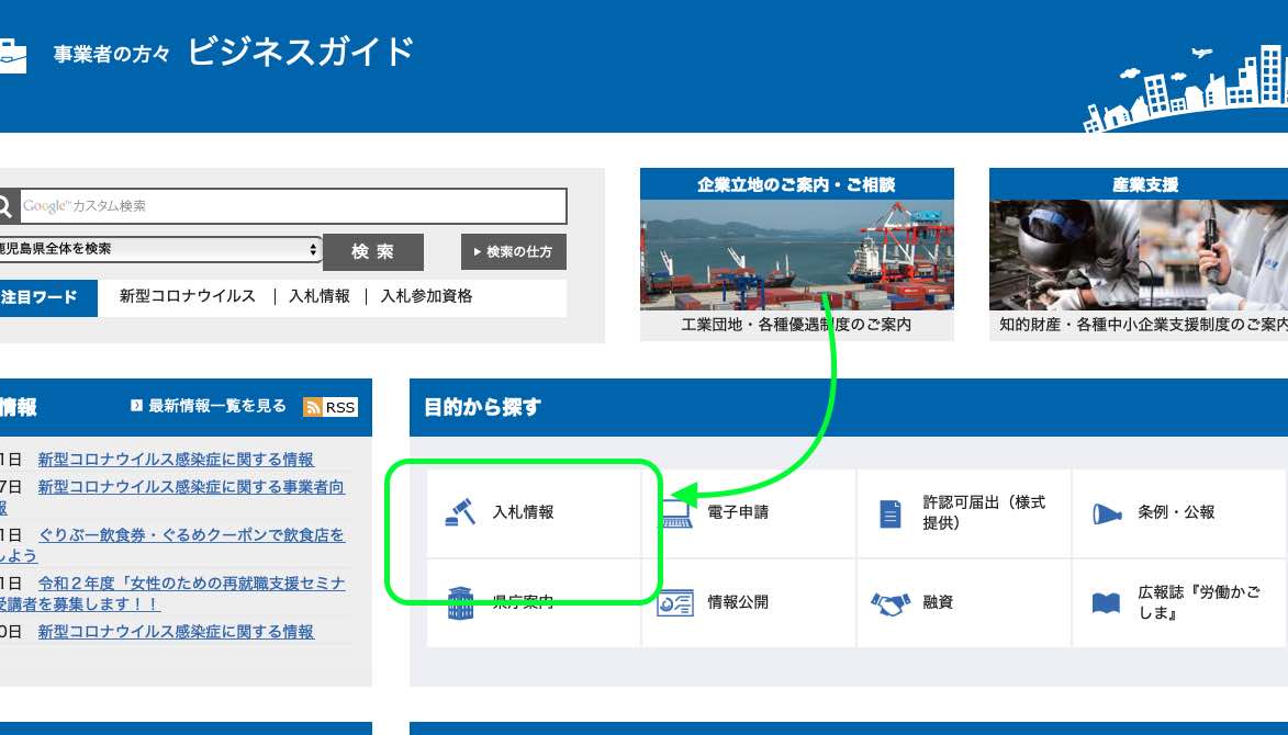 鹿児島県の入札案内の情報がある場所は、2つあります。