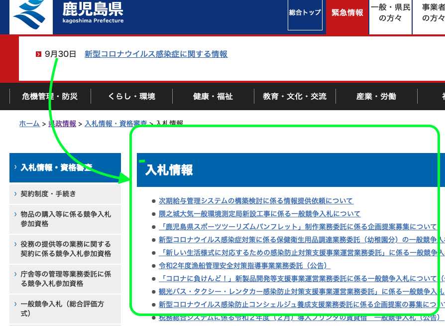 ①鹿児島県公式サイトの入札一覧表を見るメリット