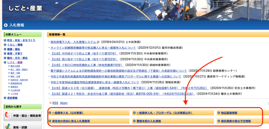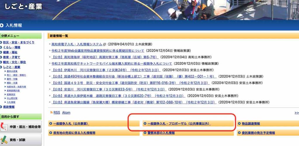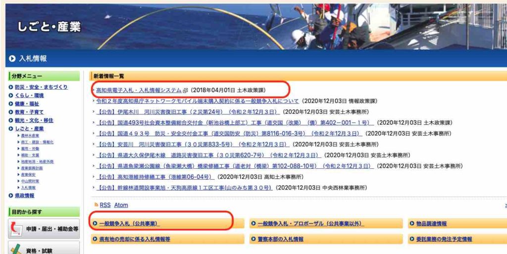 高知県が募集する入札情報はどこにある?
