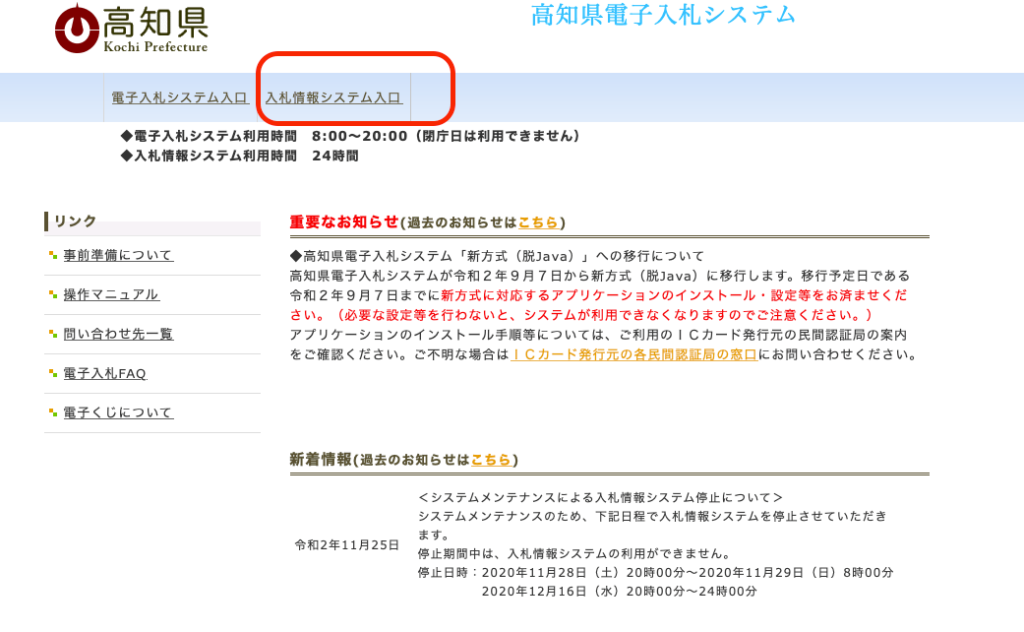 先ほど開いた「高知県電子入札・入札情報システム」を開いてください。