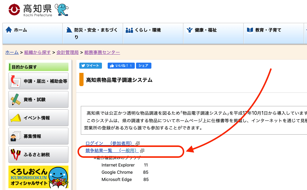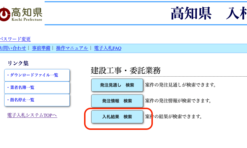 高知県の入札結果の調べ方