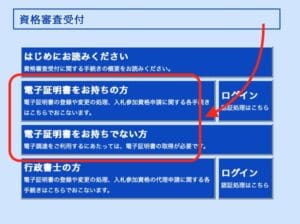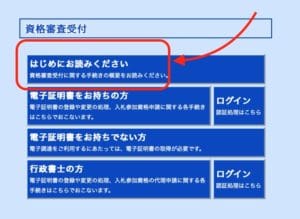 資格審査受付の「はじめにお読みください」をクリックしてください。