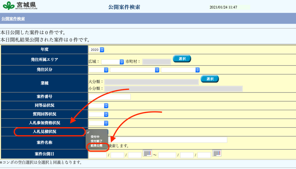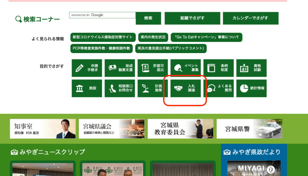 それでは、宮城県の入札結果はどこで探せばいいのでしょうか?