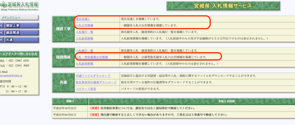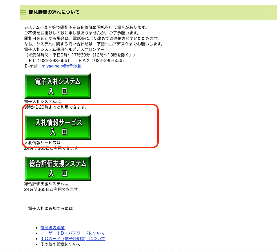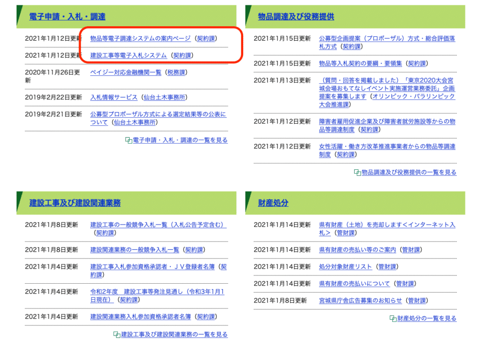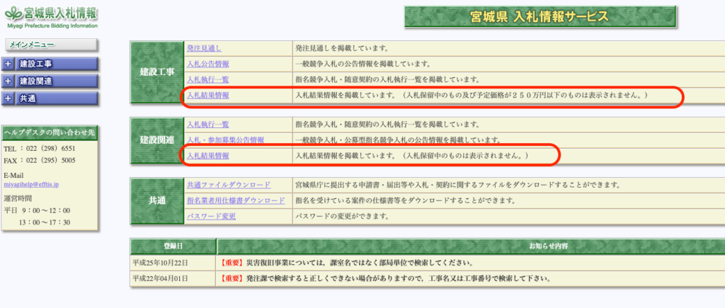 現在、宮城県では電子入札システムや公開システムが整備されており、それぞれ次の場所に入札結果がまとめられています。