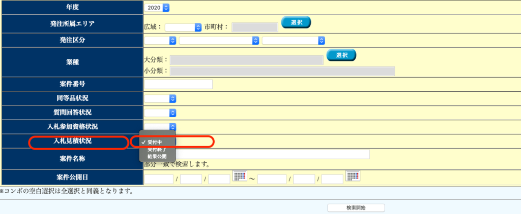 さらに「見積状況」のプルダウンメニューを開いてください。