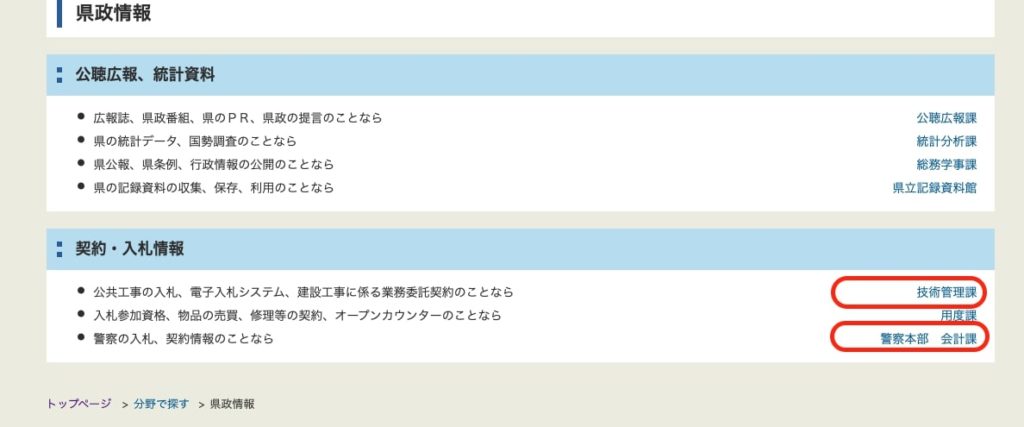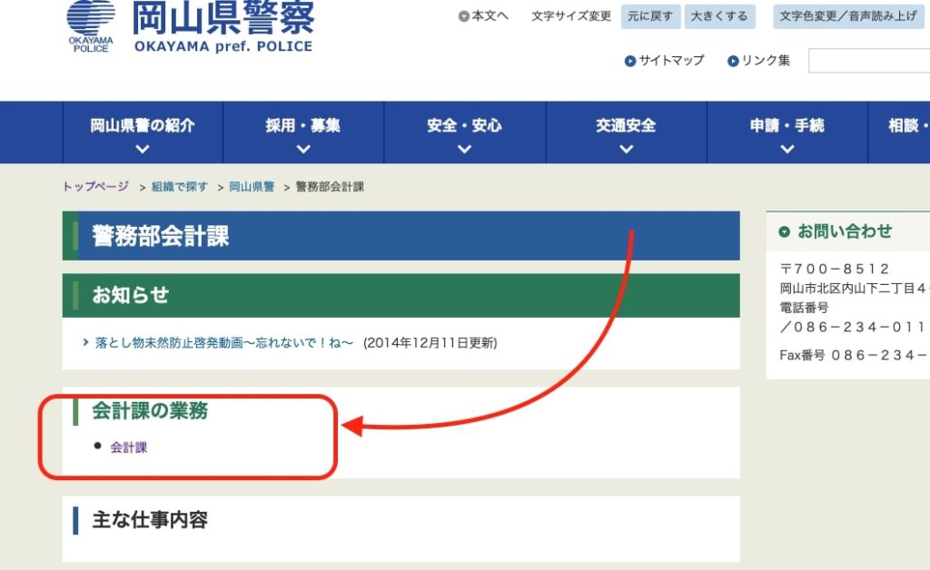 岡山県警は別のページに入札情報がありますので、ご注意ください。