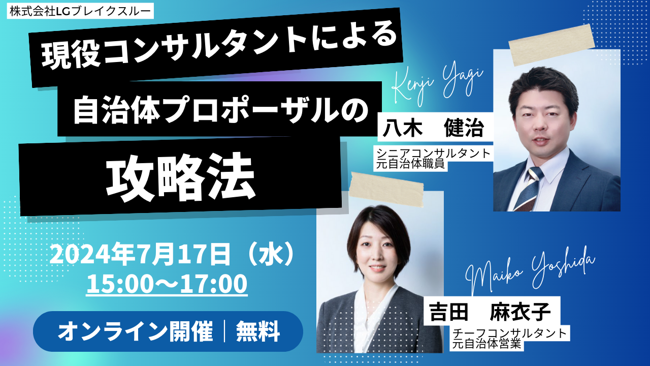 本セミナーでは現役の弊社コンサルタントが、実際にクライアントの課題をどのように解決しているかの事例を紹介し、ケースに応じた自治体プロポーザルの改善・攻略法をお伝えさせていただきます。